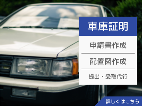 車庫証明、車の名義変更、バイクの名義変更、出張封印、緑ナンバーの名義変更、ディーラーナンバーの取得等、車両に関するどのようなご依頼でも対応可能です!